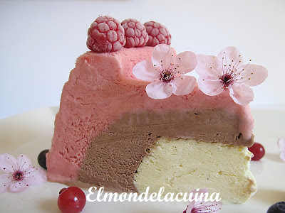 Avui, Dia Mundial de l'Aigua, també és el meu aniversari, i per celebrar-ho he fet aquest Pastís gelat de primavera, del color de les roses i el perfum dels déus.